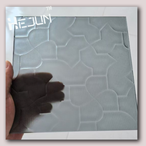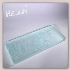 Custom Jade sand glass etching clip PET film laminated art deco glass for curtain walls.