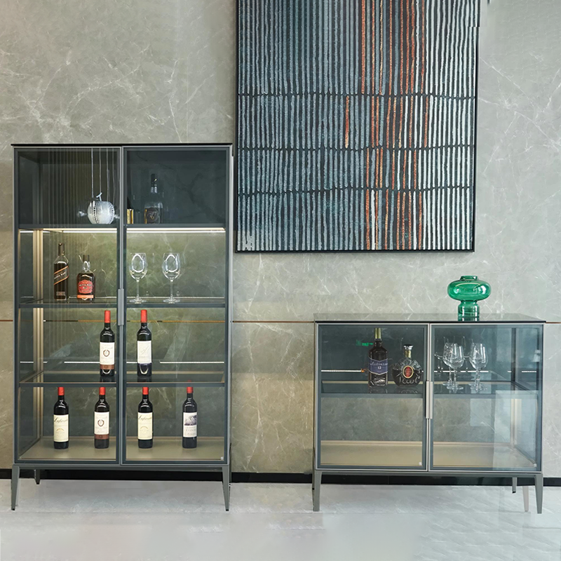 Aluminum Frame Glass Display Cases Wine Jewelry Toys Storage Cabinet Tempered Glass Display Cabinet